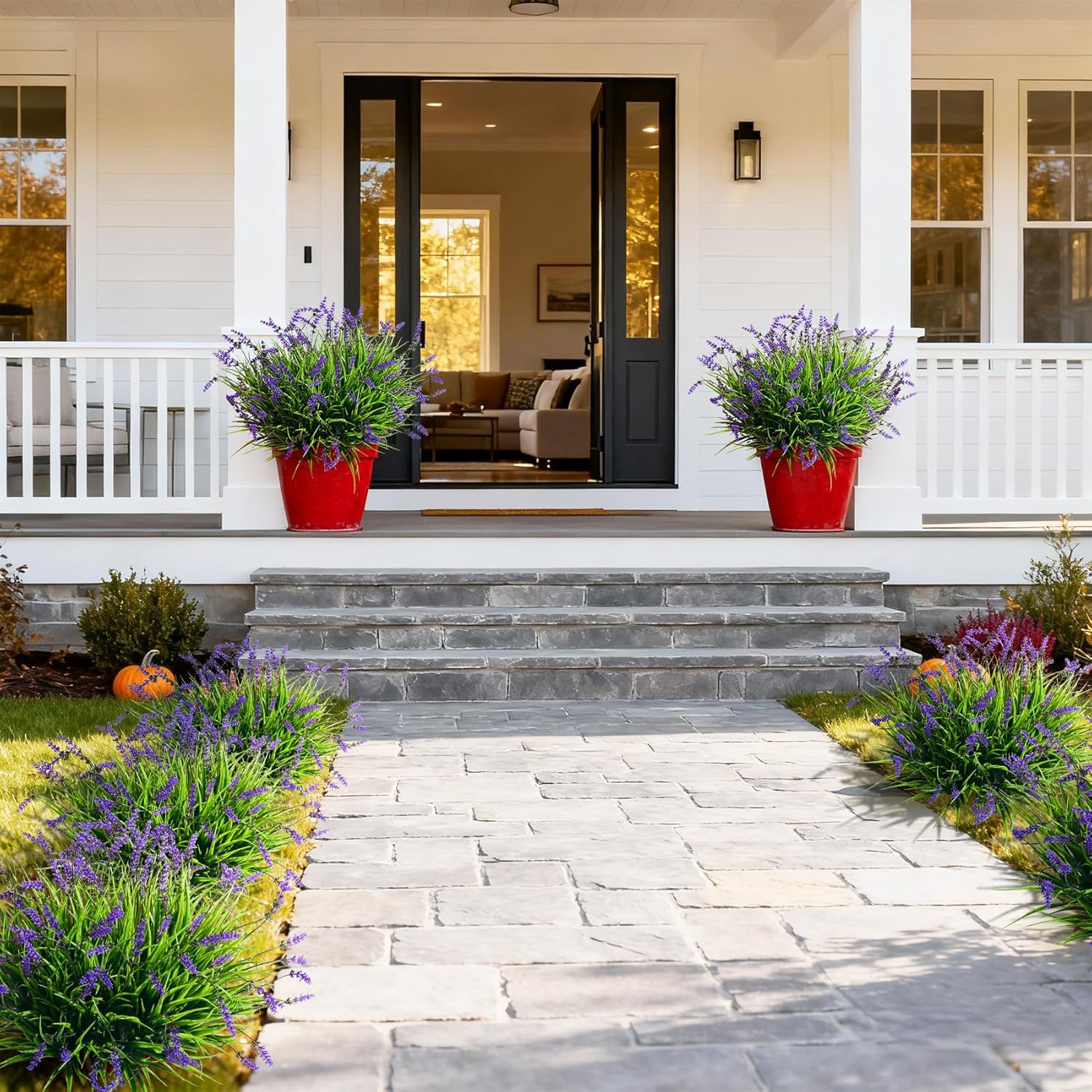 Enhance your living space with these 12 bundles of artificial lavender and monkey grass. Designed for both indoor and outdoor use, these vibrant purple shrubs offer a touch of nature without the constant upkeep. Each bundle stands approximately 16.5 inches tall, providing a lush and full appearance that stays fresh year-round. Crafted from high-quality, sturdy plastic with flexible steel wire stems, these plants are built to withstand the elements. They are UV resistant and weather-proof, making them the perfect choice for porch planters, window boxes, and garden pathways. The detachable flowers allow for easy customization and reassembly to suit your specific decor needs. Whether you are looking to brighten up a patio, add life to a dark corner of your home, or create a maintenance-free garden border, these faux plants are the ideal solution. They inject green vitality into any environment, creating a comfortable and relaxing atmosphere for you and your guests. Real users appreciate the value and volume of this set, noting that "there are a lot to bundle" and that they provide a great visual effect from a distance, making them a practical alternative to real plants.