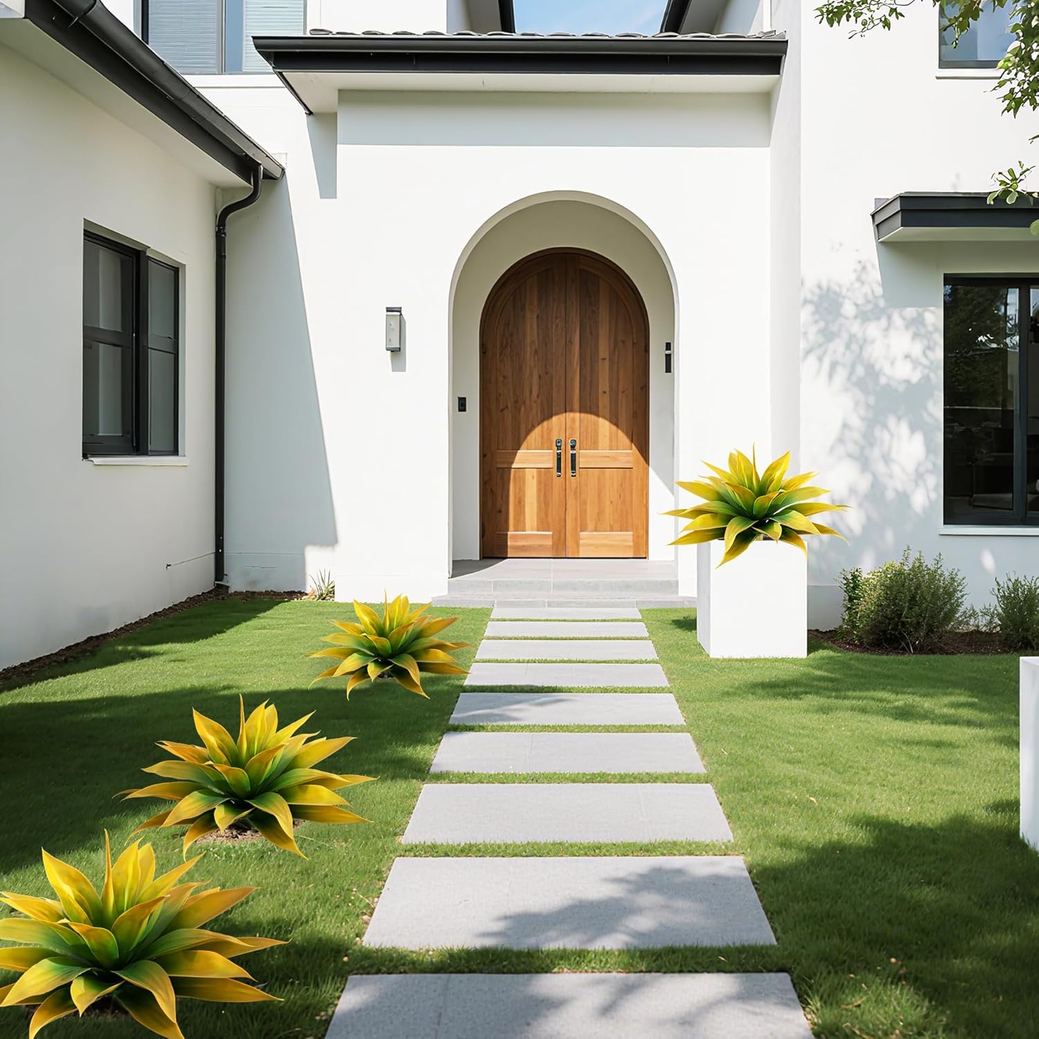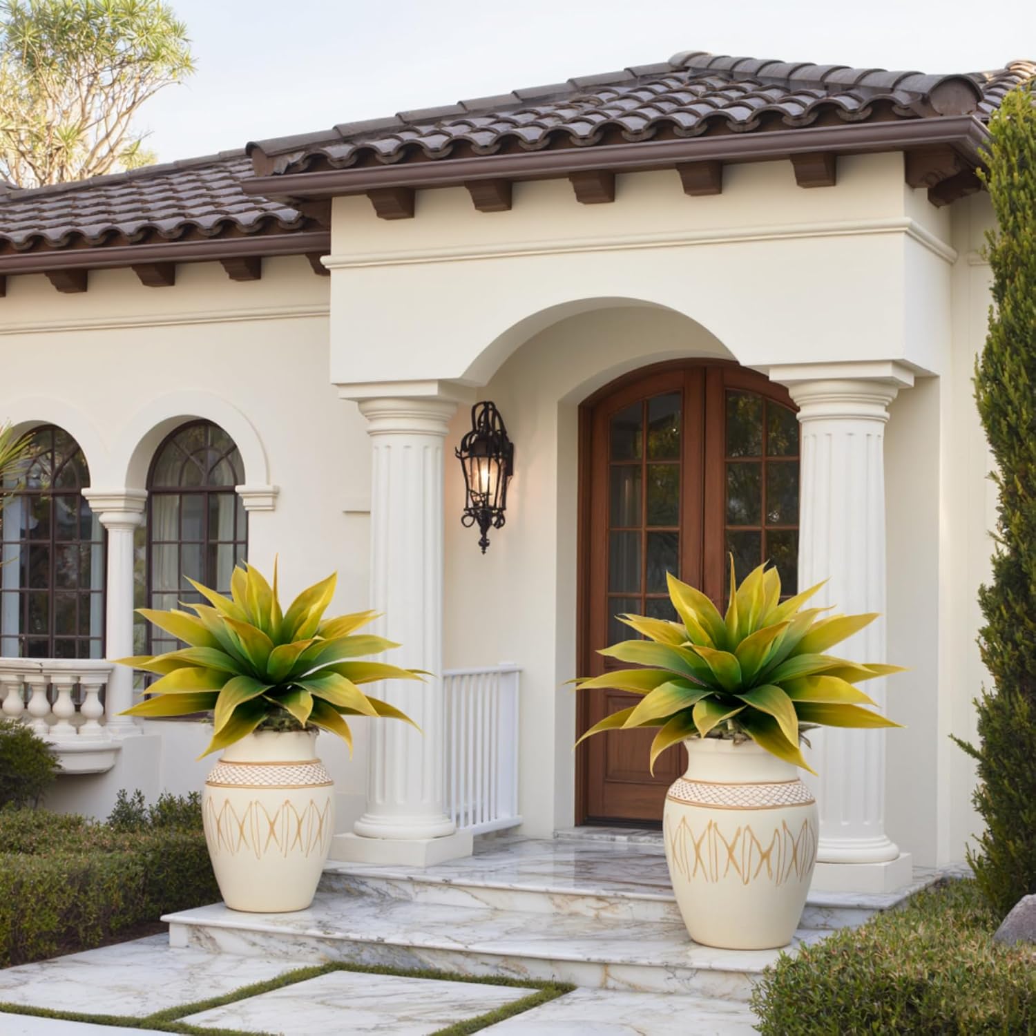 Elevate your home or garden with these stunning 28-inch artificial agave plants. Designed to capture the architectural beauty of real desert succulents, this 2-pack of faux greenery offers a vibrant yellow-green hue that stays fresh year-round. Each plant features 29 meticulously crafted leaves, providing a full and lush appearance that serves as a perfect focal point for any space. Crafted from high-quality, UV-resistant plastic, these plants are built to withstand the elements. Whether placed in the scorching sun or heavy rain, they maintain their shape and color without fading or withering. Unlike real agave, these require no watering, pruning, or specialized soil, making them an ideal choice for busy homeowners or those without a green thumb. These versatile plants are perfect for both indoor and outdoor settings. Use them to add a touch of nature to your living room corners, create a tranquil botanical garden in your bedroom, or enhance your front porch and patio. Their realistic texture and natural curves blend seamlessly with existing decor, instantly transforming any environment into a desert-inspired oasis. Customers have praised the exceptional craftsmanship of this set, with one reviewer noting it is a "Quality item that look very real." Experience the beauty of nature with the convenience of modern materials.