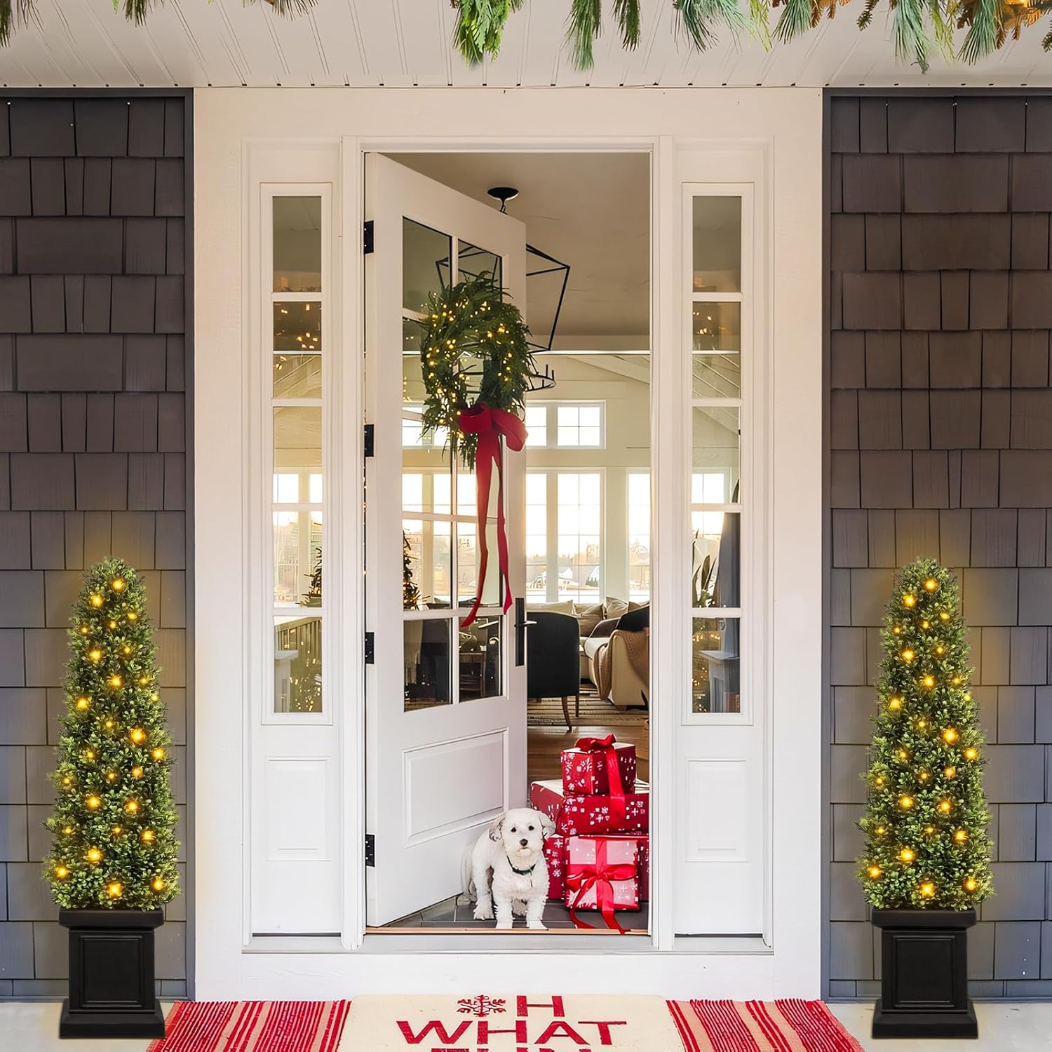 - 【Realistic and Lush】With a height of 3.5ft, topiary trees are ideal for both front doors and indoor settings. Crafted from high-quality boxwood, the lush green foliage of these topiary trees will bring a vibrant touch to any environment. Comes with a sturdy and beautiful pot, unlike other tree pots that are fragile and easy to fall over