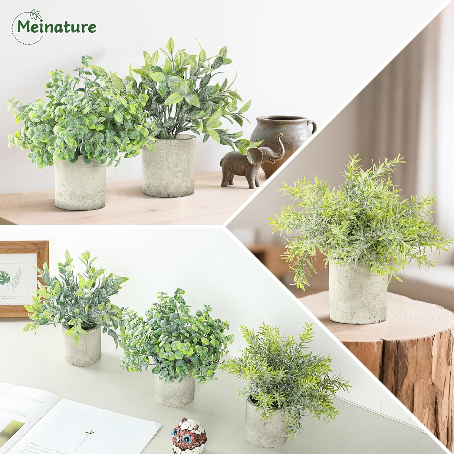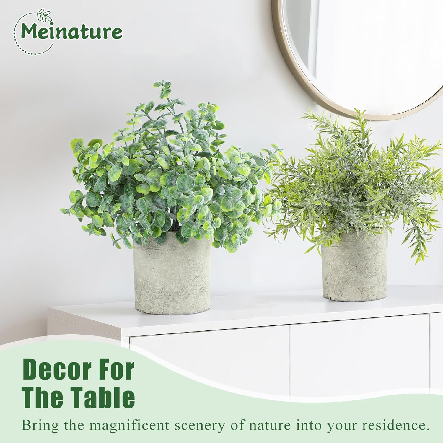Elevate your interior with this set of three hyper-realistic artificial potted plants. Featuring a patented frost-effect coating, these eucalyptus-inspired greens mimic the natural matte texture and feathered sage-green leaves of real foliage, eliminating any artificial plastic shine. They are designed to look so authentic that most guests won't be able to tell they are faux even at a close glance. Designed for busy lifestyles, these plants require zero watering, sunlight, or pruning. The eco-friendly pots are crafted from sturdy, recycled paper pulp, while the non-toxic PE leaves ensure a safe environment for kids and pets. They offer a permanent "urban jungle" aesthetic without the guilt of maintenance, making them perfect for those who struggle to keep real plants alive. At a perfect 10-inch scale, these mini greenery pots fit seamlessly on office desks, bathroom vanities, or kitchen windowsills. Whether styled as solo accents or a clustered trio, they complement farmhouse, boho, and modern minimalist decor styles perfectly. They arrive secured in anti-crush foam, ready to brighten your space immediately. Customers love the versatility and value of this set. One reviewer shared, "I put these in my kitchen over the cupboards and they look fantastic. Super price as well." It is the ideal solution for adding a fresh, green touch to hard-to-reach spaces or dim rooms.