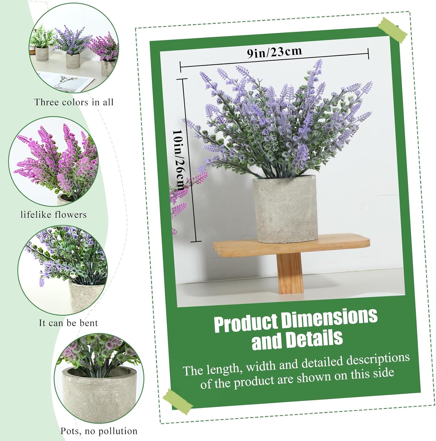 Bring the timeless beauty of nature into your living space with this set of three lifelike artificial lavender plants. Featuring a charming mix of white, purple, and lavender hues, these plants are housed in stylish, biodegradable straw pulp pots that perfectly complement Nordic, rustic, and retro interior styles. They offer a stunning touch of greenery that stays vibrant all year round without the need for sunlight or soil. Designed for modern living, these maintenance-free plants require no watering, making them the ideal choice for busy professionals, beginners, or anyone looking to brighten up their environment without the hassle of plant care. Each plant is crafted with advanced techniques to mimic the delicate texture and shape of real lavender, providing a realistic look that enhances any room with natural elegance. Their compact size (9.5”H x 6.8”W) makes them incredibly versatile for various settings. Whether placed on a kitchen cupboard, office desk, windowsill, or bookshelf, they add a refreshing pop of color to homes, hotels, and cafes. Customers have praised the aesthetic value and affordability of this set, with one reviewer noting: "I put these in my kitchen over the cupboards and they look fantastic. Super price as well."