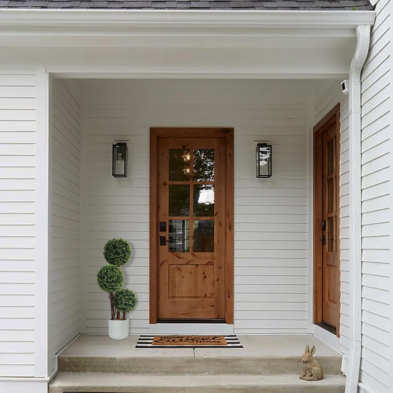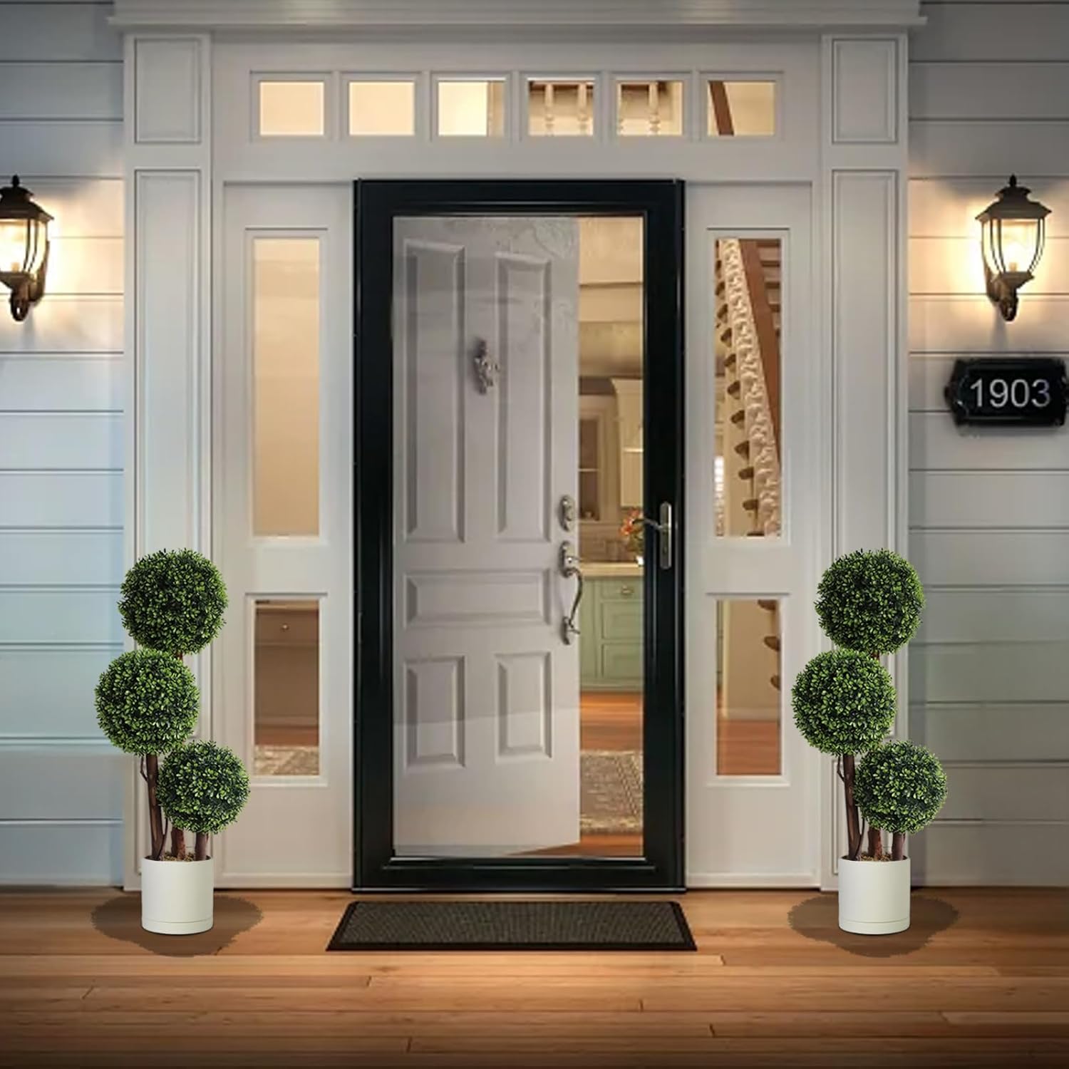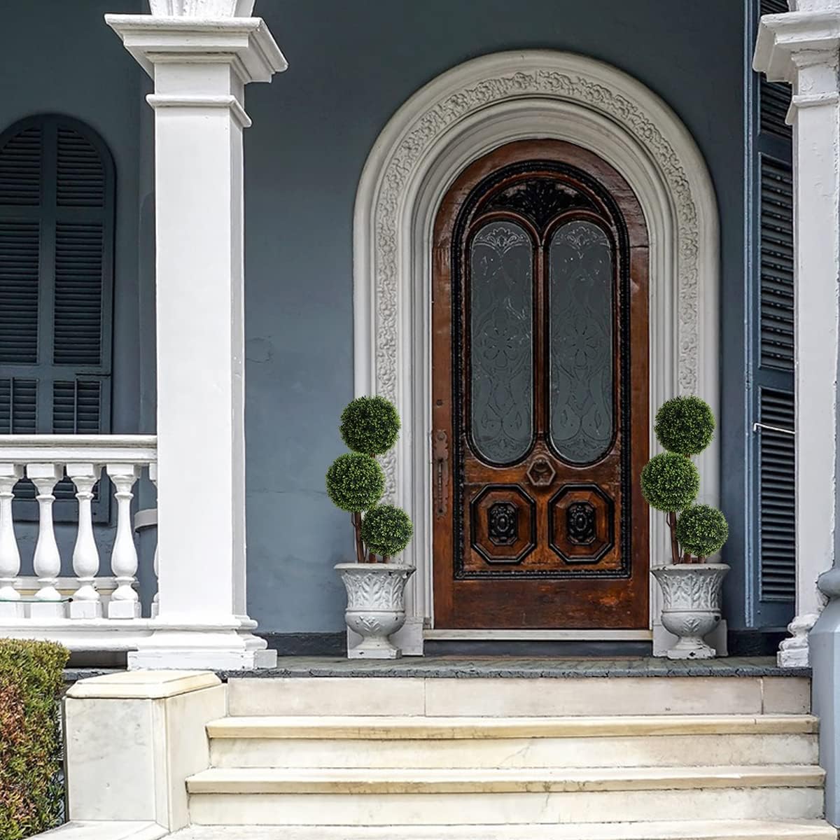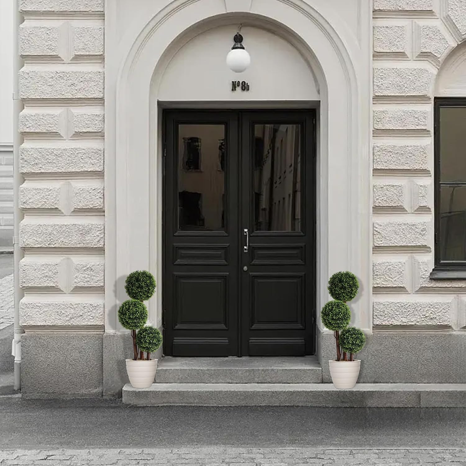 Elevate your home or garden with these stunning 3ft artificial triple ball boxwood topiary trees. Designed with realistic textures and vivid green hues, these faux shrubs mimic the natural beauty of real plants without the upkeep. The trunks are naturally treated and entwined with delicate vines to bring a touch of organic elegance to any space. Crafted from high-quality, UV-resistant plastic, these evergreen trees are built to last. They require no sunlight, watering, or pruning, making them the perfect solution for busy homeowners or low-light areas. Whether placed on a front porch, in an office, or as a garden accent, they maintain their lush vitality year-round without fading or wilting. These versatile topiaries are ideal for both indoor and outdoor decor. Standing at 35 inches, they fit perfectly in entryways, balconies, or living rooms. While they may require a quick manual reshaping upon arrival due to shipping, they are easily adjusted to achieve your desired full and lush look. Customers appreciate the aesthetic value and durability of these trees. One reviewer shared their experience: "The trees arrived smashed in the box. I was able to reshape each tree with gentle care. Once they were repaired, they look great."