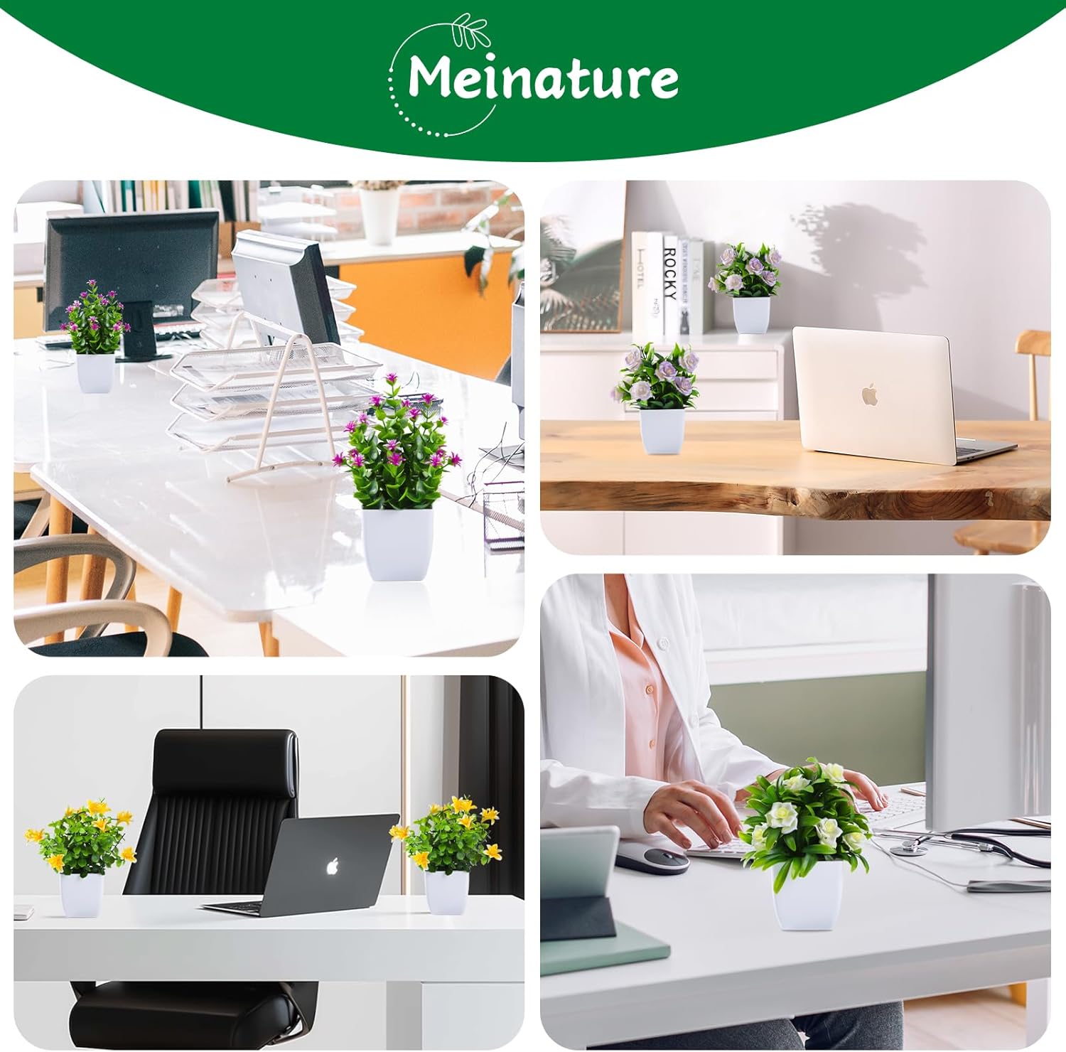 Enhance your living or workspace with this 4-pack of small artificial plants featuring realistic flowers. These mini faux plants are designed to bring a touch of nature indoors without the hassle of daily upkeep. Each plant stands at a compact 7.2 inches, making them the perfect addition to any tabletop, shelf, or bathroom vanity. Crafted with high-quality, fade-resistant materials, these plants offer a vibrant look that lasts. The sturdy pots and pet-friendly leaves ensure they are safe for families and durable enough for both home and commercial environments like restaurants or libraries. They are particularly ideal for spaces where real plants struggle, such as humid bathrooms or windowless offices. Versatility is at the heart of this set. Whether you are decorating a small office cubicle, a conference table, or a bathroom counter, these space-saving accents fit seamlessly into any decor style. Their dust-resistant surface makes cleaning a breeze, allowing you to maintain a fresh look with minimal effort. Customers love the value and aesthetic of this set, with one reviewer noting, "So cute, love it! Perfect size for what I needed them for. Great price and great quality." This 4-pack provides an affordable way to instantly brighten multiple rooms in your home.