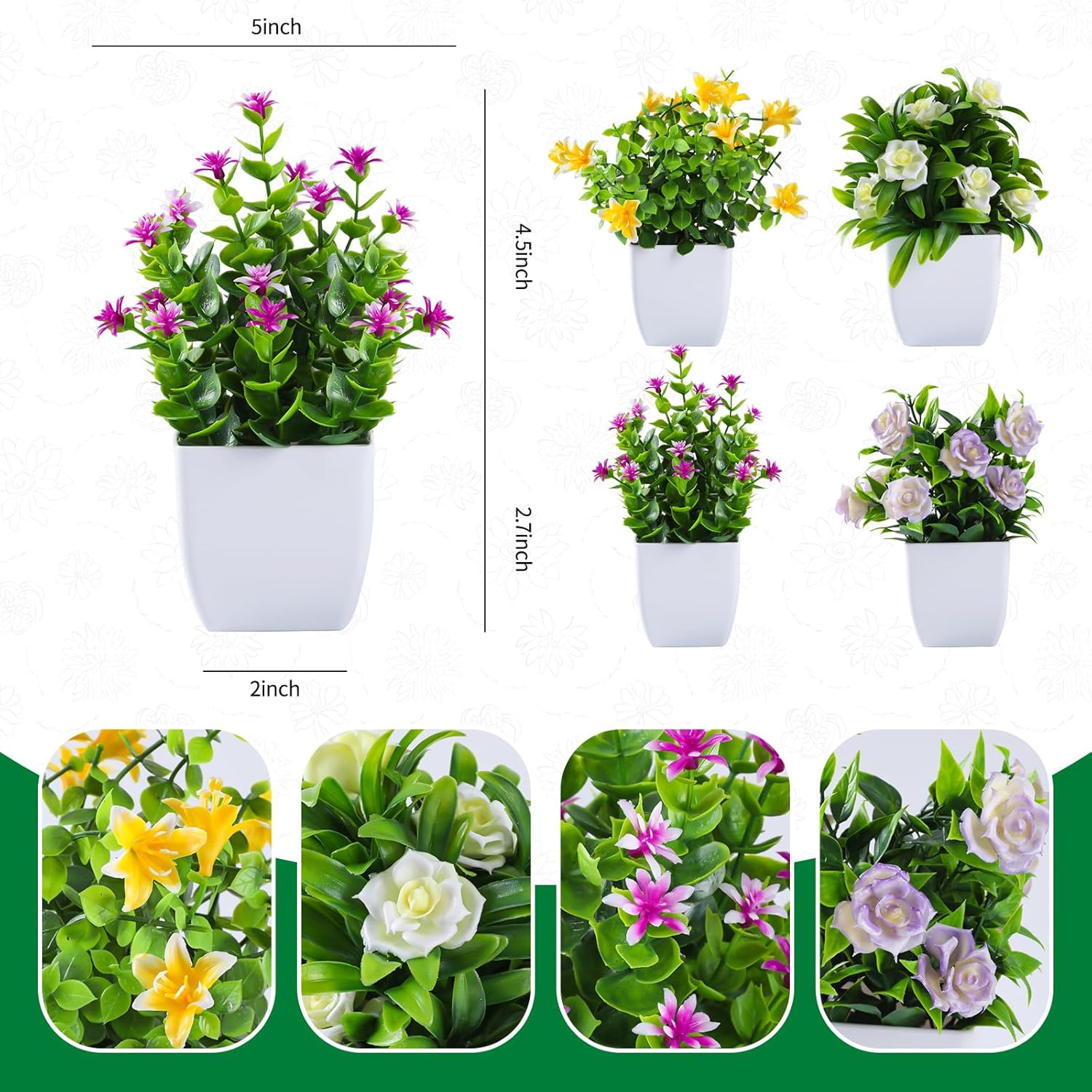 4 pack Small Artificial Plants Flowers Mini Home