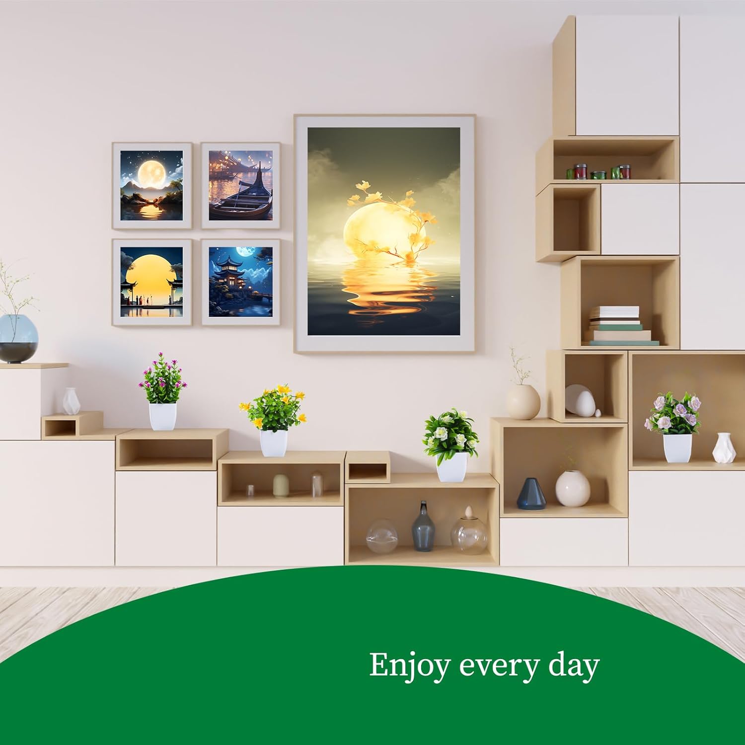 - Low-maintenance greenery requires no watering or sunlight.