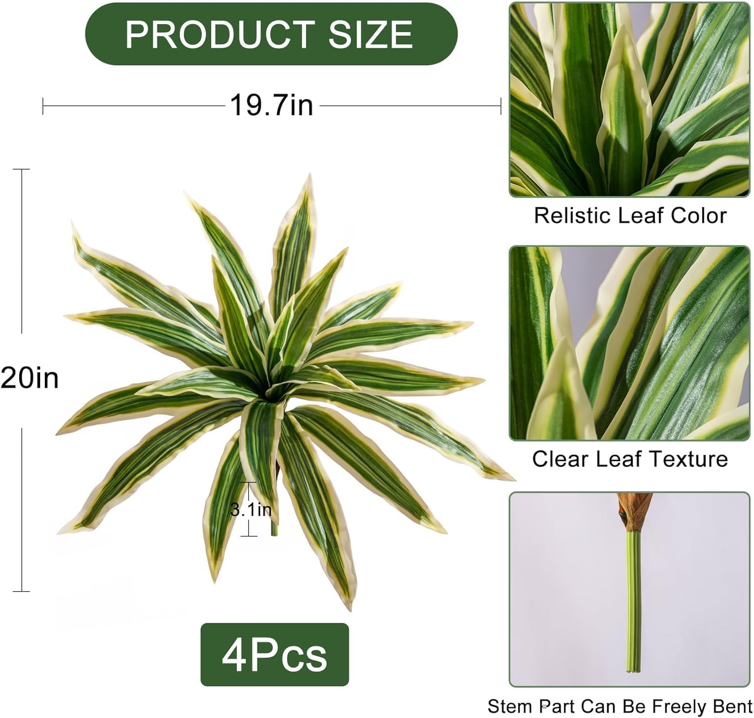 4 pcs Artificial Dracaena Stems Greenery Branches Home
