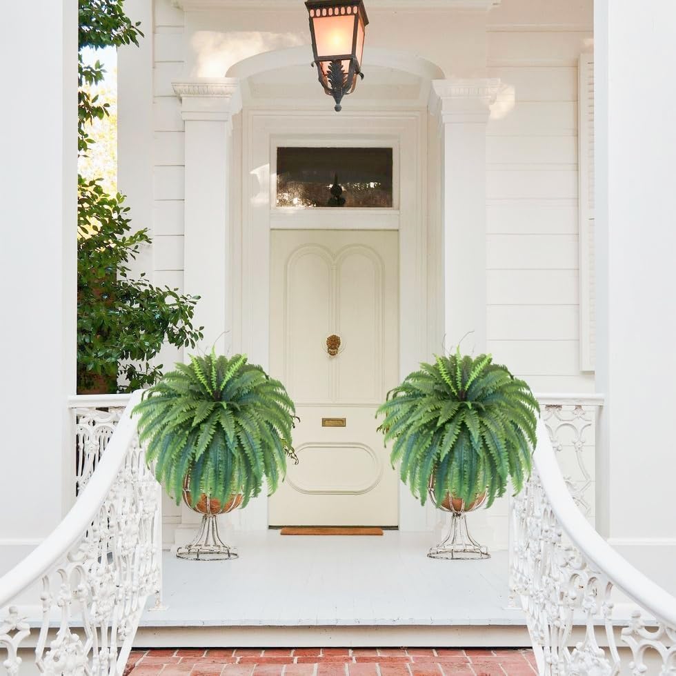 Elevate your space with these stunning 51-inch large artificial ferns. Designed to mimic the lush beauty of natural sword-shaped leaves, each plant features 66 meticulously crafted fronds that provide a full, dimensional appearance. Whether you're looking to brighten a dark corner or add curb appeal to your porch, these faux ferns offer a timeless botanical touch without the hassle of upkeep. Built for both indoor and outdoor versatility, these ferns are UV resistant and weather-hardy. The fronds feature varied shades of green and shallow toothed pinnate details, ensuring a lifelike look that fools even the most discerning eye. The durable stems and gracefully arching leaves maintain their vibrant color year-round, resisting fading and wilting in any environment. Perfect for entrance planters, hanging baskets, or office decor, these large-scale plants fill space beautifully. They are an ideal solution for gardeners who want consistent greenery in areas where real plants struggle to thrive. Simply spread the fronds to achieve a lush 51-inch diameter and enjoy instant natural beauty. Customers are impressed by the quality, with one experienced gardener noting, "These ferns are awesome and look very real! I am a gardener so I recognize nice plants."