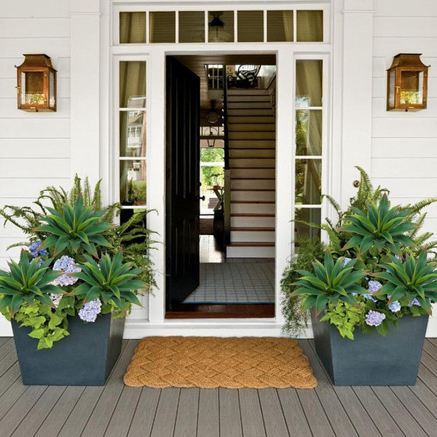 Enhance your living space with these stunning 12.5-inch artificial succulent aloe plants. Designed to mimic the natural beauty of real agave, these unpotted faux plants provide a vibrant pop of color and a touch of desert charm to any setting without the hassle of maintenance. Each piece is meticulously crafted to ensure a natural appearance that stays fresh all year round. Crafted from high-quality, UV-resistant polyurethane, these plants feature intricate details and lifelike textures that make them indistinguishable from the real thing. They are safe for households with pets and children, requiring no watering, soil, or sunlight to stay lush and green throughout all seasons. The durable material ensures they withstand the elements when placed outdoors. Perfect for both indoor and outdoor decoration, these versatile fake aloe plants can be placed in terrariums, decorative bowls, or directly into planters. They are ideal for home offices, garden arrangements, wedding festivals, or balcony displays, bringing a natural flair to your environment. Simply stick them in a pot and enjoy the instant transformation. Our customers love the authenticity of these plants, with one reviewer noting that they "feel and look very realistic." It is the perfect solution for those who want to enjoy greenery during the winter months or in low-light areas where real plants struggle to survive.