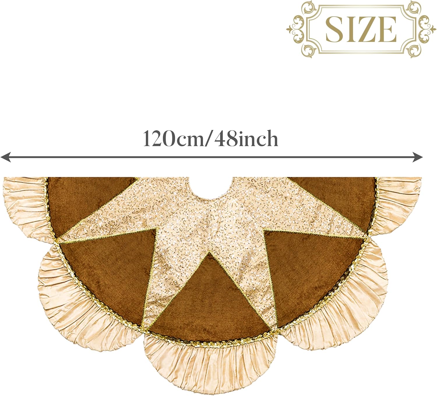Long-lasting Use & Compatibility Designed for extended use over many years when stored properly, this durable tree skirt complements our luxury copper gold theme products, including stockings, Christmas balls, wreaths, garlands, and figurines.