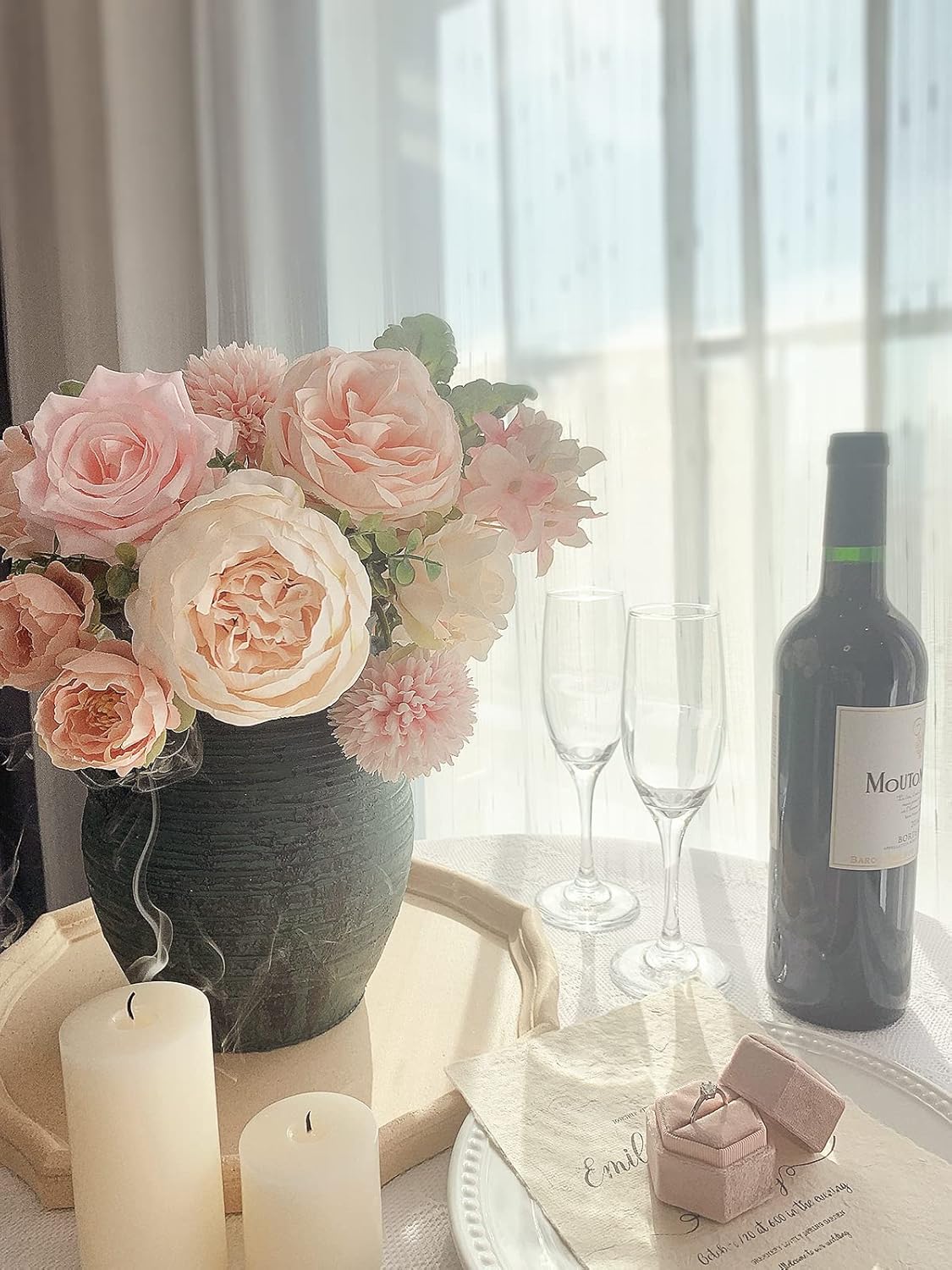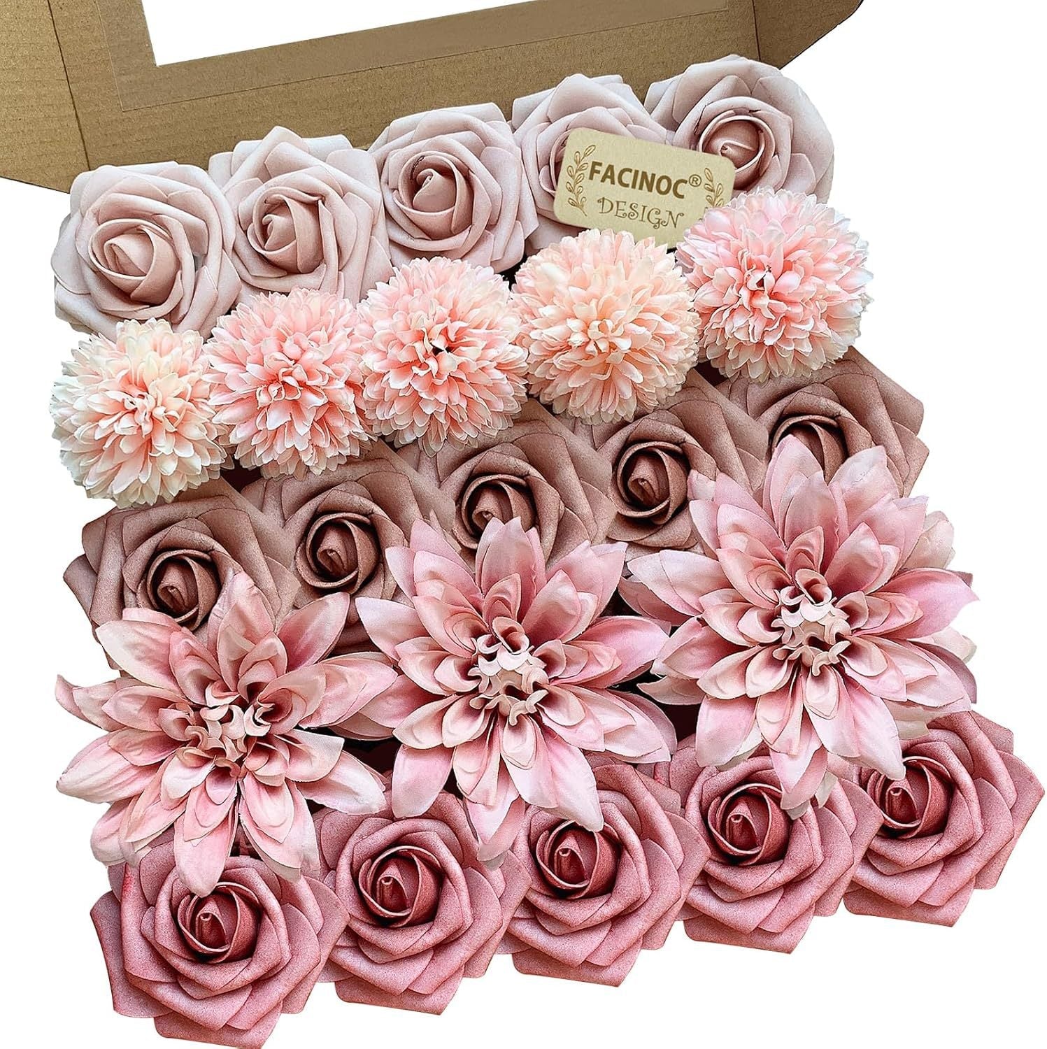 Peonies Artificial Flowers Pink Silk Roses Bulk for DIY Wedding Bouquet Bridal Shower Decorations Fake Floral Arrangements Party Table Centerpieces Home Decor Indoor Blush Peach Box 20pcs