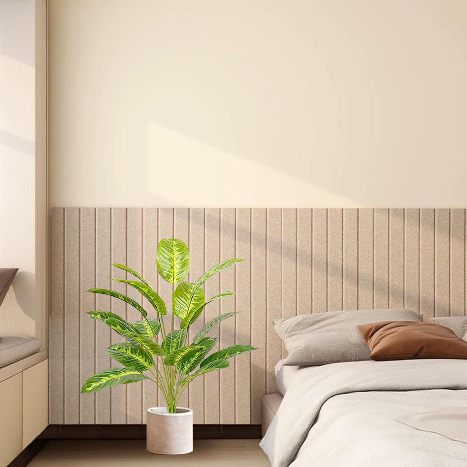 The bendable branches and stems with embedded wires allow for easy reshaping to achieve your desired fullness and shape. Perfect for both indoor and outdoor decoration, this tall floor plant enhances living rooms, bedrooms, offices, balconies, patios, and commercial spaces.