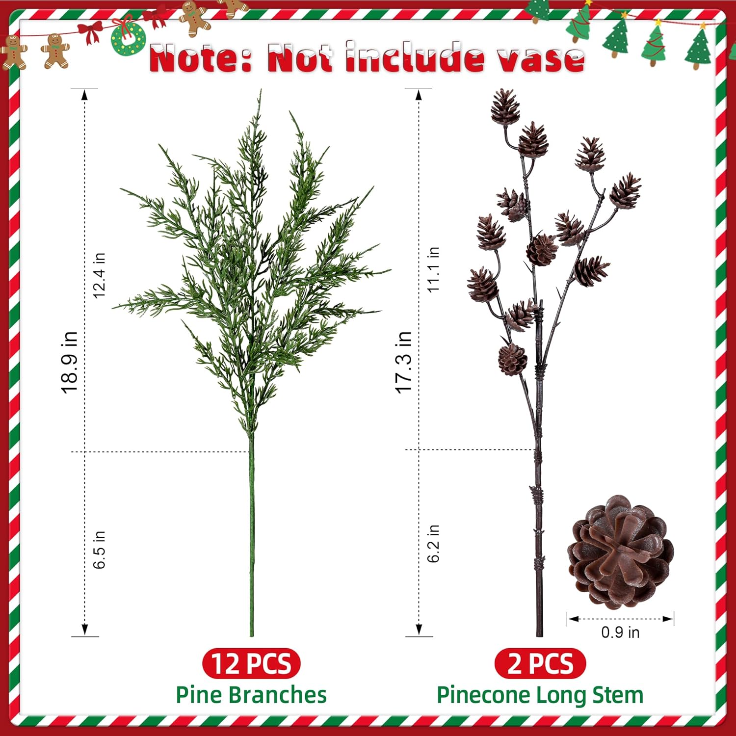 - Each branch measures approximately 20 inches long; Material: high-quality plastic and wire; Color: pine green; Sold as a set of multiple branches.