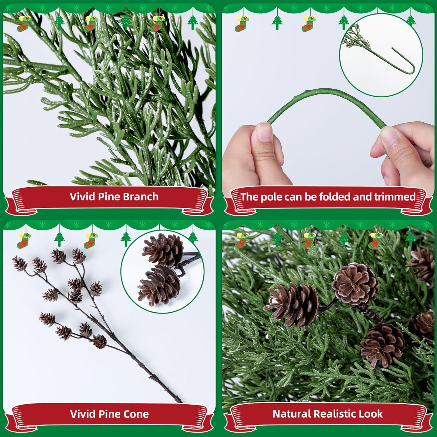 Crafted to replicate real pine branches, these artificial greenery stems bring the beauty of the outdoors inside during the holiday season. Each branch has detailed needle textures and a natural pine-green color that lasts year after year without shedding or wilting. Use them to enhance your Christmas wreaths, centerpieces, mantel decorations, or create your own festive arrangements. Durable and versatile, these faux pine branches are ideal for both indoor and outdoor winter décor. Save time and worry about needle cleanup while achieving a fresh, festive ambiance with these lifelike pine stems.
